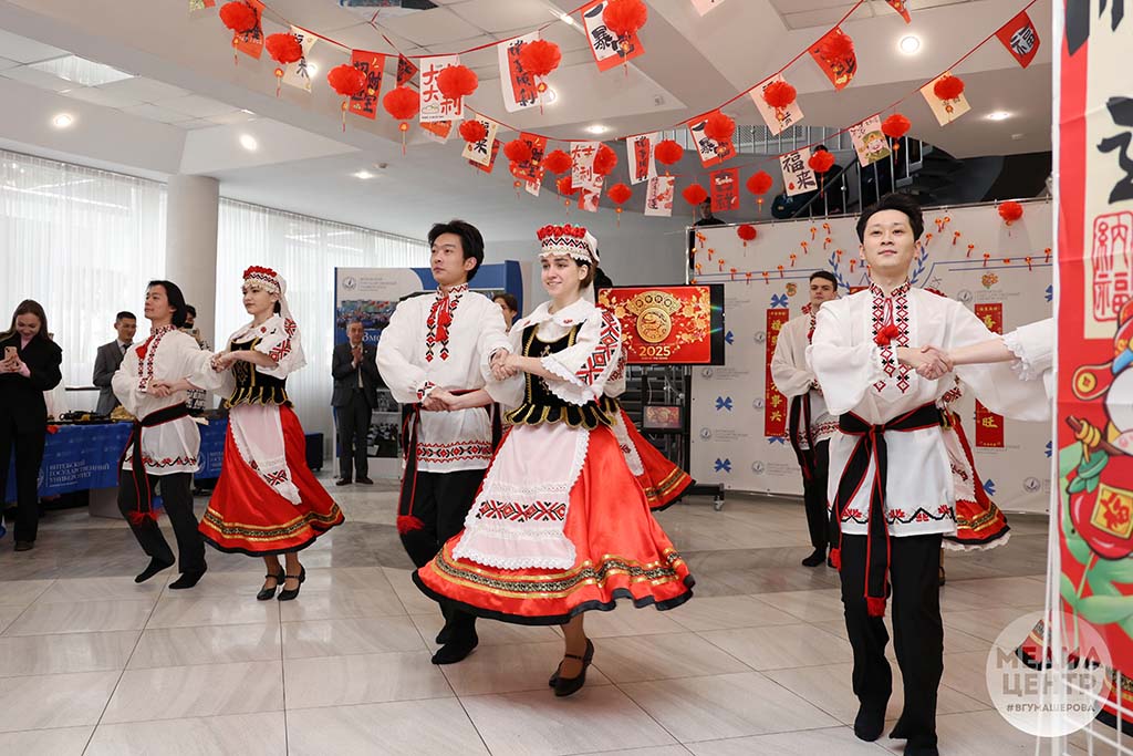 Татьяна Сергеевна: Помимо этого, многие оригинальные идеи исходят от ректора нашего университета Валентины Васильевны. К примеру, ставший весьма популярным совместный номер китайских и белорусских ребят – «Калинка». А первым концертным номером, в котором принимали участие студенты из КНР и Беларуси, была «Полька белорусская».